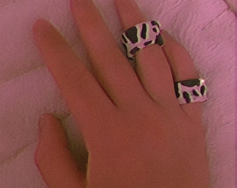 Handmade Cow Pattern Clay Ring 90s Cow Print Clay Ring