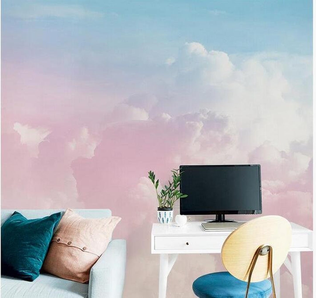 Abstract Rainbow Colorful Clouds Wallpaper Pink And Blue Etsy De